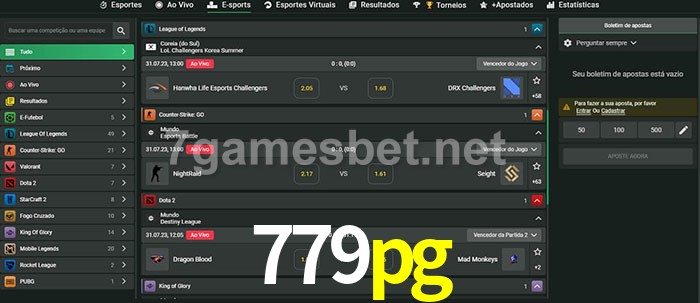 O 779pg oferece uma grande seleção de opções de apostas em e-sports com probabilidades competitivas